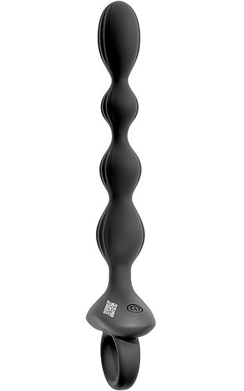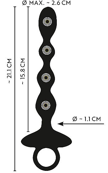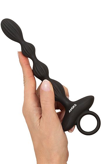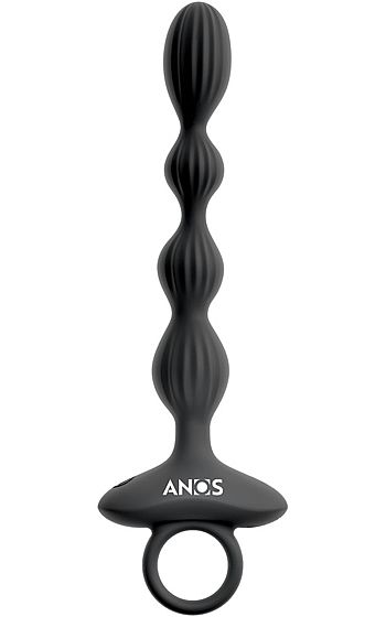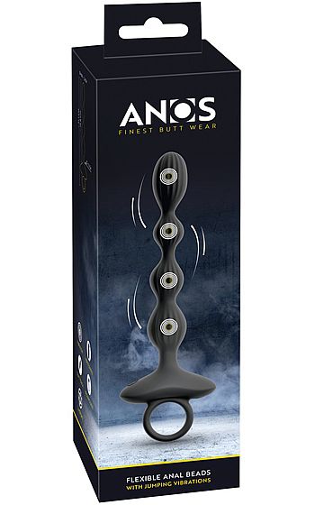 Beskrivning: Anos Vibrating Anal Beads är skapad för dig som vill ta upplevelsen ett steg längre. Fyra sköna kulor i sammetslent silikon vibrerar, pulserar och till och med hoppar mellan varandra i ett överraskande mönster som får varje rörelse att kännas ny. Två motorer driver tio olika vibrationslägen, från lugna rytmer till intensivt spelande effekter.