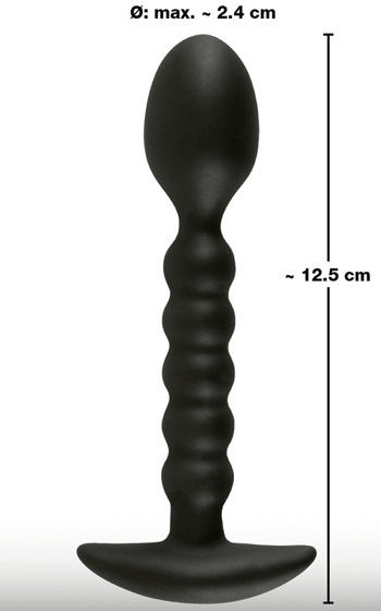 Beskrivning: Förföriska analdildo av sammetslen silikon som passar både nybörjare och proffs. Känslan vid användande är väldigt annorlunda jämfört med en vanlig analplugg. Den smalare kroppen av pluggen, med en diameter av endast 1,2 cm är räfflad och ger anal njutning vid varje in och utförande. Är du manlig användare stimulerar "bollen" i toppen dessutom din prostata.