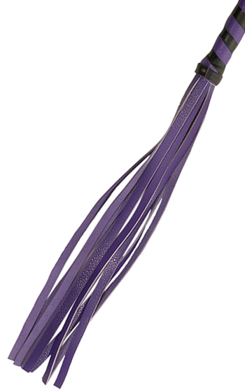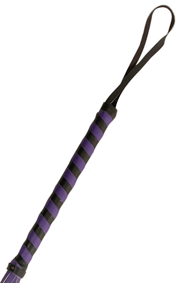 Beskrivning: Njut av lite smisk eller straffa en olydig partner! En piska i perfekt storlek med mjuka remmar av äkta läder. Handtaget är 23cm långt, randigt lila/svart och har en hängögla i toppen. Piskan håller hög kvalitet och är tillverkad av ett riktigt slitstarkt läder.