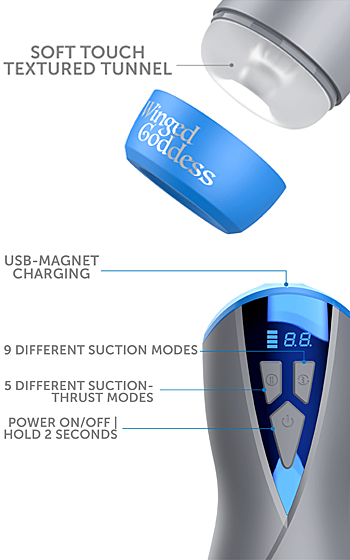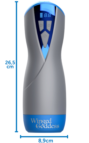 Själva masturbatorn är utformad för att ge en varierad och djup stimulans, där sug och vibrationer samverkar i flera nivåer. Kombinationen av mjuka innerstrukturer och kraftfull respons gör att upplevelsen kan byggas upp i lugn takt eller drivas vidare mot något mer intensivt, helt beroende på vad stunden kräver. Allt styrs enkelt via knapparna på enheten, så att du kan justera utan att bryta rytmen.