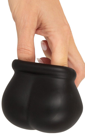 Ball bagen mäter cirka 7 x 8,5 x 5,5 cm. Den integrerade pung-ringen har ett innermått på cirka 2,8 cm och är flexibel. Tillverkad i Liquid Silicone.