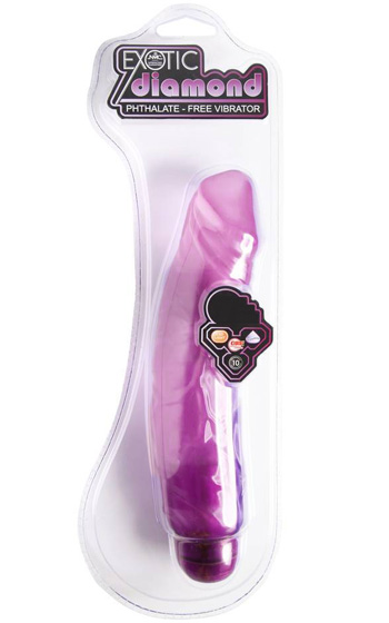 Lite större modell som penetrerar maximalt 21 cm, den passar därmed dig som vill ha något lite större än genomsnittet. Exotic diamond är böjlig för att kunna hållas i ett bra grepp oavsett hur du bäst tycker om att använda dina penetrerande leksaker. Lätt ådring och en försiktig ollon-kant som inte känns allt för mycket. För dig som vill ha ett realistiskt utseende och känsla, men tycker att många andra dildos/stavar är allt för ådriga eller har för markerade ollon.Exotic Diamond är försedd med en lysdiod i knappen som underlättar markant vid lekar i mörker. Toppenbra stav utan några negativa sidor till helrätt pris!
