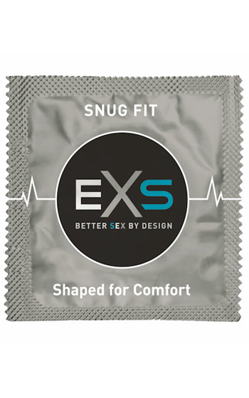 Beskrivning: EXS Snug Fit är en extra tajt och rak kondom som påminner om "RFSU Mamba" som kramades. Den är sobert designad i rektangulär folie för speciella tillfällen. Den är tillverkad i naturlatex och 100% luktfri. Den är också rikligt behandlad med silikonbaserat glidmedel för maximalt glid. Längd 180 mm, Bredd 49 mm, Tjocklek 0,07 mm.