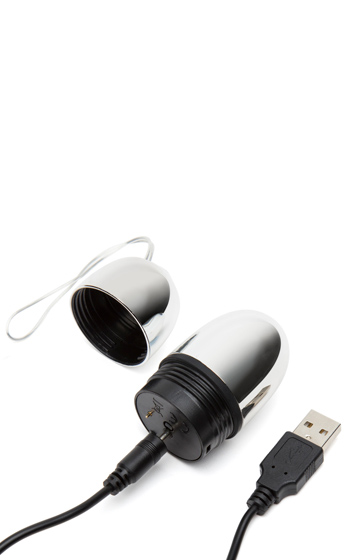 Beskrivning: Vibrerande ägg i väl glidande, högblankt silver från det officiella märket Fifty Shades. Ägget är uppladdningsbart och erbjuder dig 10 olika vibrationslägen och 6 hastigheter. Pleasure Egg är vattentätt för att kunna följa med in i duschen/badet. Fungerar lika bra att använda ensam som kvinna och ha i sig eller som klitorisvibrator, som att dela produkten med din partner. Ha ägget i dig och låt din partner sköta fjärrkontrollen, en roligare (och skönare) promenad har ni nog inte upplevt innan!