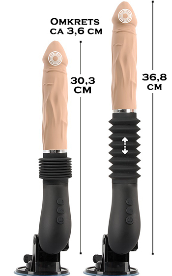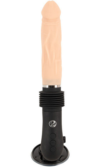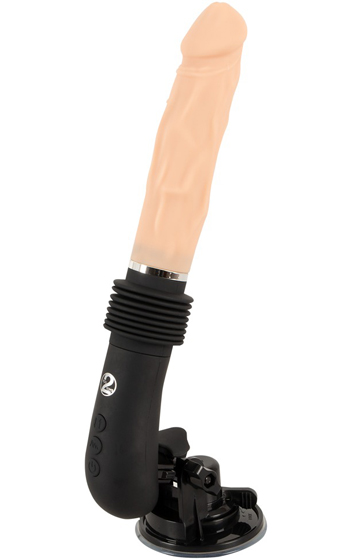 Beskrivning: Populära Fucking Machine från märket You2Toys, nu äntligen här i tredje generation! Med naturtrogen form, djupa stötar och kraftfulla vibrationer levererar den en upplevelse som verkligen känns i hela kroppen. Sugkoppen fäster stadigt på släta ytor och kan justeras 90°, så du kan hitta din favoritvinkel och låta händerna vara helt fria.