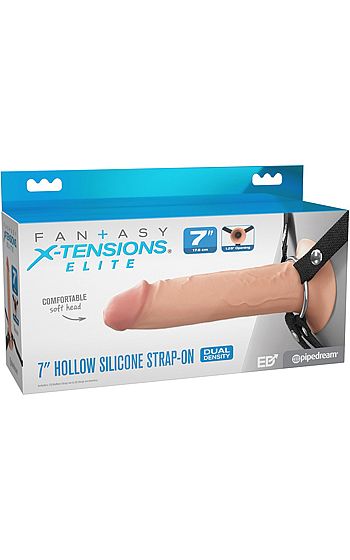 Beskrivning: Hollow Silicone Strap-on från Fantasy X-tensions Elite kombinerar en realistisk penishylsa med en justerbar sele som sitter stabilt och bekvämt. Den är tillverkad av sammetslen Dual Density-silikon som känns naturlig mot huden men är tillräckligt fast för att hålla formen även vid intensiv användning. Hylsan både förlänger och förtjockar penisen, vilket ger ett fylligare och mer kraftfullt intryck.
