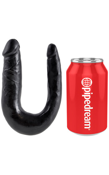 Beskrivning: Dubbeldildo i lite mindre storlek som låter dig bli uppfylld både fram och bak - samtidigt! Dildon är U-formad i gjutningen men kan till viss del rätas ut. Äntligen kan du känna känslan av två penisar i dig samtidigt utan att behöva blanda in två killar. Upptäck nöjet med att bli uppfylld av en lite mindre penis i baken samtidigt som den något tjockare modellen tar hand om din vaginas njutning. Handgjord modell för perfektion på alla sätt och vis. Hårdheten på de båda dildosarna är väldigt lik en riktig penis. Dubbeldildon är gjord av ftalatfritt, latexfritt, kroppssäkert, och allergivänligt gummi. Tillverkad av Pipedream i USA. Den penetrerande längden är ca 12 cm i varje hål.