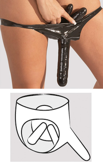 Beskrivning: Svart latextrosa av robust konstruktion som låter dig ha en dong i rumpan, en i musen medan du penetrerar din partner med den största dildon framtill. Dongen framtill penetrerar din partner 16 cm på längden och 4 cm på bredden medan de två dongarna på insidan är 12 cm långa och 3,5-4 cm breda. Härlig produkt som gör din och din partners sexlekar fulländade! Latextrosan är onesize och passar alla storlekar mellan small till large.