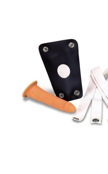 Beskrivning: Strap-on dildo tillverkad av latex, med tillhörande sele och platta som gör att den monteras likt en vanlig trosa. Passar perfekt till det homosexuella paret, eller det heterosexuella paret som vill utveckla sexet genom att leka ombytta roller. Dildon i paketet är relativt liten, mjuk och böjlig utan att kännas slapp, den är även löstagbar och går därmed även att använda separat, utan trosan. Selen är av läderimitation med vita resårband för att passa alla storlekar. Dildon är 14 cm lång och maximalt 11 cm i omkrets.
