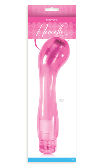 Beskrivning: Nouvelle Massager V erbjuder dig en multiflexibel stav av mjukt jelly med en otroligt tjock och något böjd topp. Det intensivt stora och kurviga huvudet anpassar sig efter just din insida då materialet helt saknar bas. Högt placerad motor för en djup och tillfredsställande njutning. Nouvelle V är underbart fiffig och passar in i nästan vilken ställning som helst. Kompatibel med både vatten och silikonbaserat glidmedel samt enkel att rengöra.