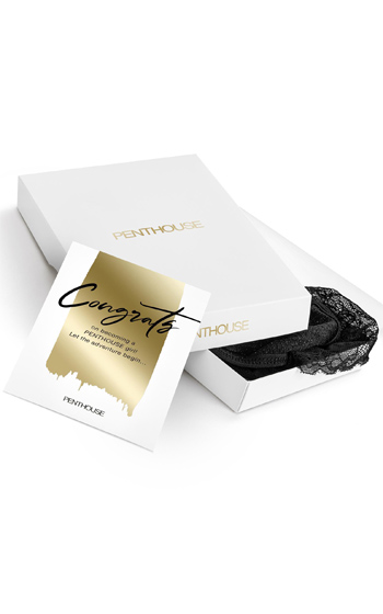Beskrivning: Sexigt set i två delar med stringtrosa och läcker spets-bh från amerikanska Penthouse. Plaggen är gjorda av 96% polyester och 4% elastan.