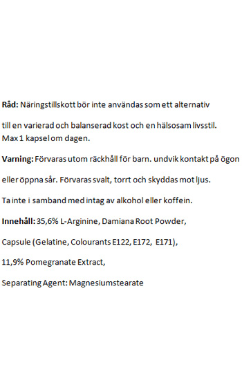 Beskrivning: Kapslar som effektivt kan hjälpa till att öka den kvinnliga sexlusten och den sexuella energin. Ingredienserna är helt naturliga och en mix av örter, mineraler och vitaminer som kan fungera lustförhöjande för just din sexualdrift. För snabbast effekt blandas kapselns innehåll i vatten, eller hälls direkt under tungan. Ogillar du smaken går det självklart även bra att svälja kapseln hel.