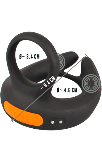 Beskrivning: Innovativa penis och pungring från Rebel som fokuserar på att ge dig som man njutning under användandet. Stretchig och flexibel design samt en bekväm passform runt både penis och pung. Ringen har en inre diametrar på 3,4 cm respektive 4,6 cm. De dubbla vibratorerna, strategiskt placerade runt pungen, levererar djupa vibrationer - perfekt för både soloäventyr och parlek.