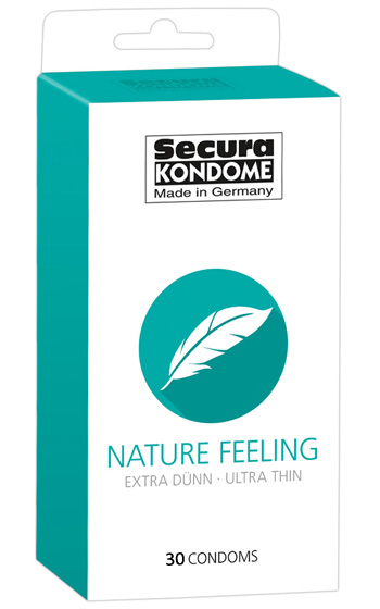 Beskrivning: Secura Nature Feeling är en kondom som är något tunnare i gummit än vanliga standardkondomer. Denna kondom ger dig den ultimata njutningen med maximal känsel under sexet, utan att du behöver oroa dig för att kvaliteten är bristfällig. Alla kondomer från Secura är tillverkade i Tyskland och har självklart klarat de hårt ställda kraven på kvalitet inom EU. Transparent och slät, ultratunn kondom som är behandlad med glidmedel för bästa upplevelse. Känslan vid användning av Nature Feeling kan bäst jämföras med känslan att inte bära kondom alls. Du kan nu alltså ha säkert sex utan att tumma på njutningen det minsta. Produkten levereras i en neutral påse innehållande 30 kondomer. Tillverkad av naturlatex. Bredd 52 mm.