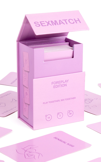 Beskrivning: Sexmatch Foreplay Edition är ett lekfullt och spännande kortspel för par som vill skapa en ny nivå av intimitet och lekfullhet i sovrummet. Med 89 spelkort, inklusive 8 jokrar, och ett enkelt upplägg där ni matchar ord och illustrationer, blir varje runda fylld av skratt, utmaningar och sexiga belöningar.