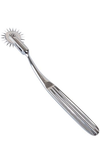 Beskrivning: Wartenberg hjulet är ett verktyg som ursprungligen användes för att testa nervreaktioner. Verktyget har blivit mycket populärt inom BDSM kulturen. Denna modell har extra långa och vassa taggar. Hållbar modell av hög kvalitet tillverkad helt i metall.