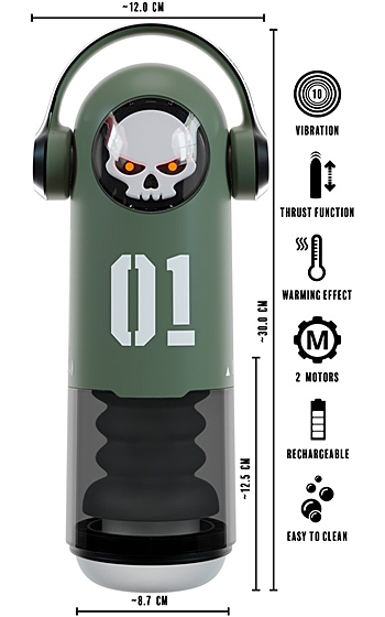 Beskrivning: SKULL-masturbatorn från Rebel kombinerar en tydligt lekfull design med helautomatisk funktion för dig som vill ha något mer än en vanlig sleeve. Skalleformen med lysande röda ögon ger ett uttryck som är lika visuellt som funktionellt, utan att ta fokus från själva upplevelsen.