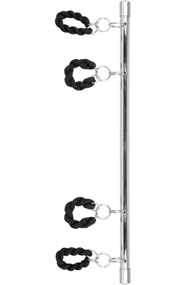 Beskrivning: Öka spänningen i dina sexlekar med detta kromade stålrör som tillsammans med de fyra bommulsöglorna låter dig sätta fast både händer och fötter. Fungerar även utmärkt att samtidigt användas av två personer med antingen hand eller fotleder bojade - möjligheterna är oändliga! Öglorna är tillverkat av mjukt bomullsrep för lång hållbarhet och komfort i alla lägen. Använd denna leksak ensam eller i kombination med andra sköna artiklar för extra spänning! Produkter från "Ouch!" kan helt demonteras för rengöring, och tyg kan tvättas i maskin.