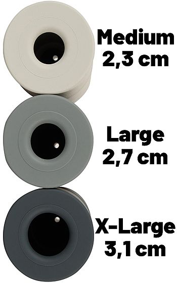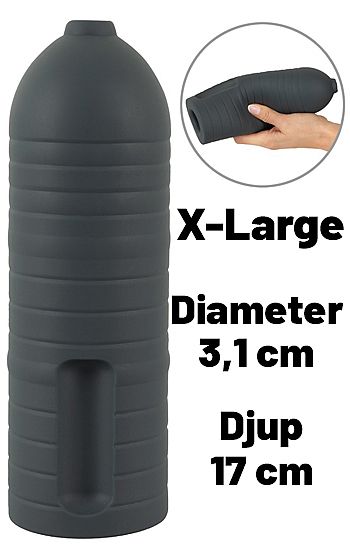 X-Large: total längd 21 cm, insticksdjup 17 cm, öppning Ø 3,1 cm (flexibel)