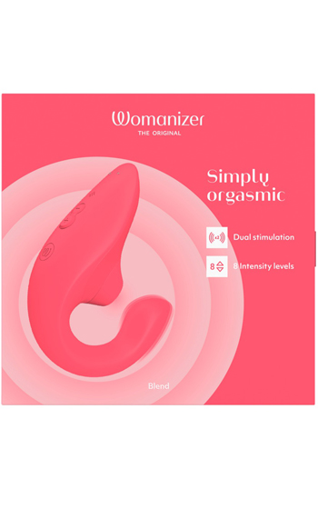 Beskrivning: Womanizer Blend är framtagen för dig som vill ha en dubbelstimulering som känns naturlig, följsam och effektiv från första tryckningen. Lufttryckskammaren omsluter klitoris med mjuka, pulserande vågor som successivt bygger upp känslan, medan den böjda armen inuti ger ett djupare, mer rytmiskt tryck mot G-punkten.