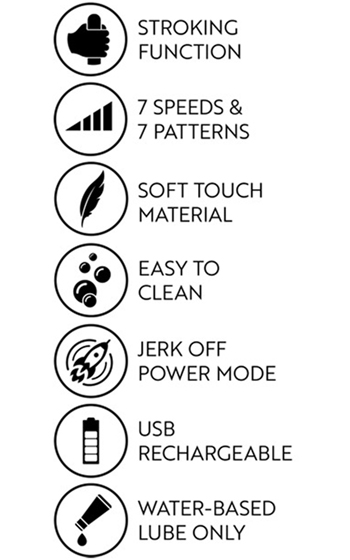 Själva onanihylsan rör sig rytmiskt upp och ner och kan anpassas med 7 olika rörelsemönster, 7 hastigheter och 5 slaglängder - allt styrs enkelt via tydliga LED-paneler. Med sina dubbla greppvänliga handtag ligger den stadigt i händerna, vilket ger full kontroll samtidigt som den gör jobbet åt dig.